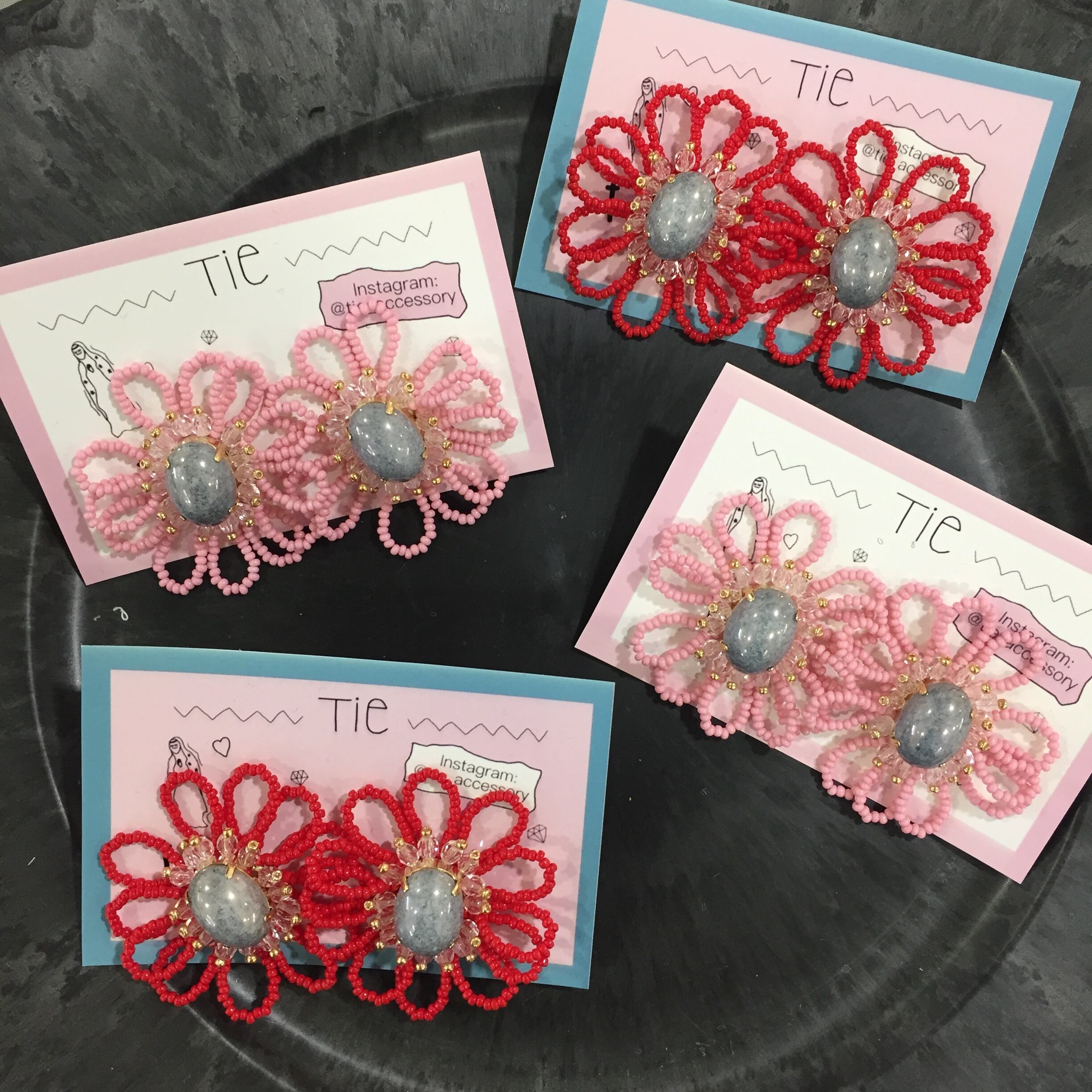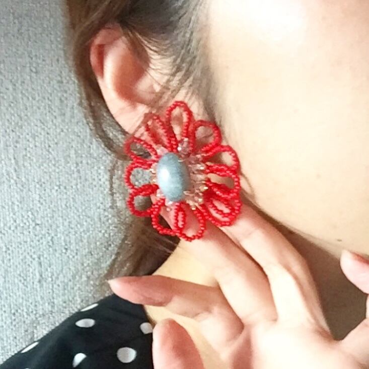 チェコビーズを中心に、ビーズで出来た大きなフラワーモチーフのアクセサリーです。 重さ:約9g/個 ▽アレルギー対応について▽ こちらのピアスはチタンポストとなっております。イヤリングのアレルギー対応は出来かねますのでご了承下さい。 ▽その他▽ アクセサリーは一つひとつ手作業で作成しております。パーツの配置等個々に多少の差が生じます。また製作中にワイヤーなによる微細な傷が付いている場合があります。何卒ご了承下さい。