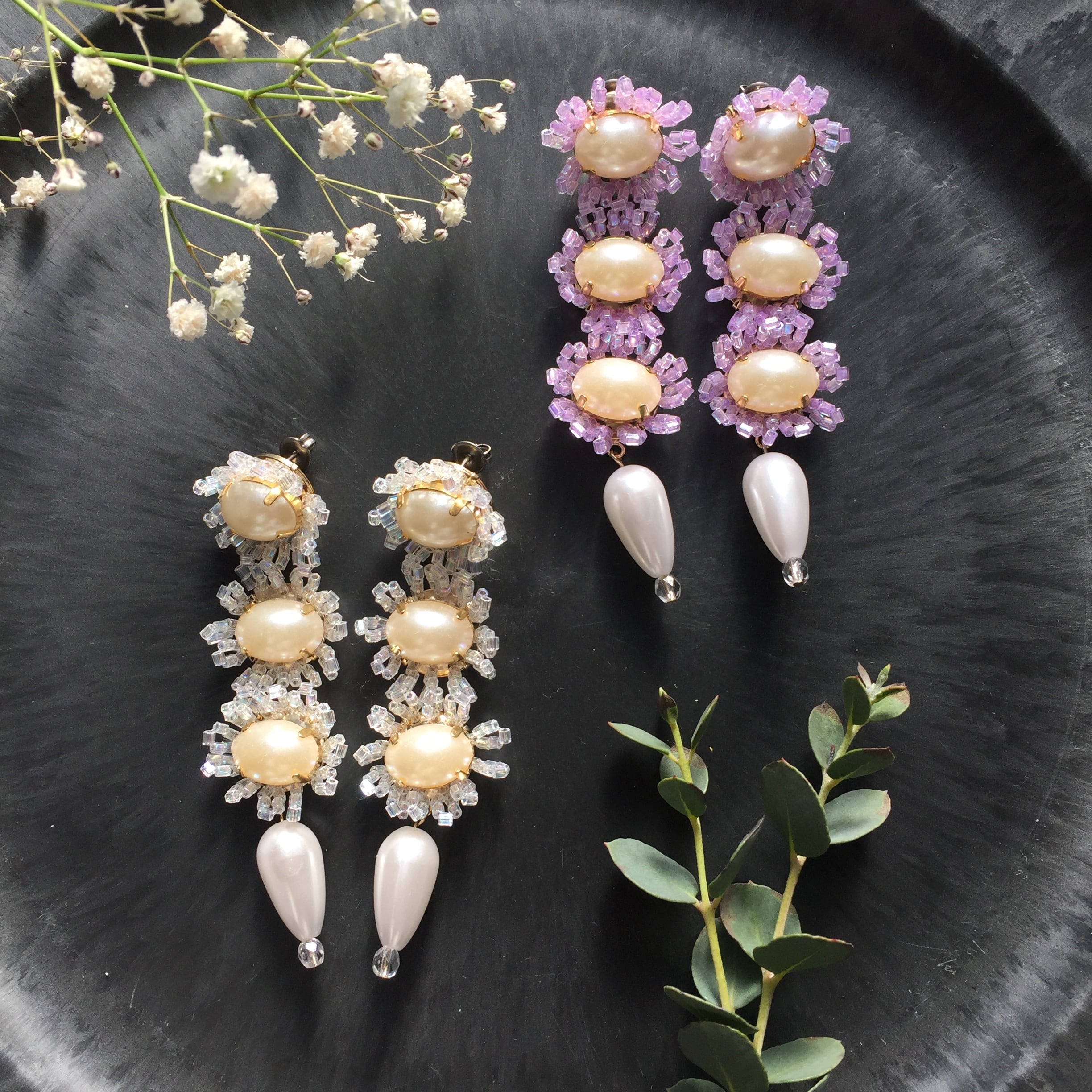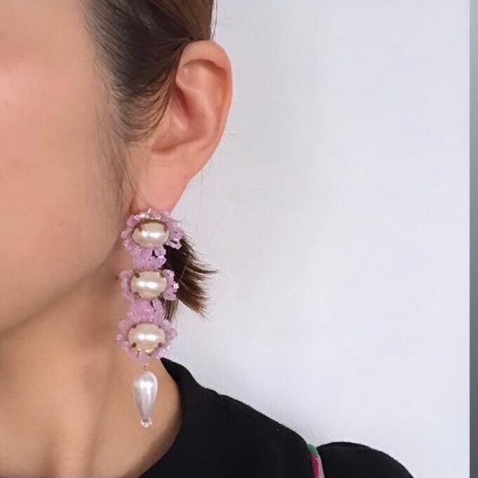 パールの周りをビーズで縁取っています。ビーズのカットがキラキラと光る、華やかなアクセサリーです。 重さ:約9g/個 ▽アレルギー対応について▽ こちらのピアスはチタンポストとなっております。イヤリングのアレルギー対応は出来かねますのでご了承下さい。 ▽その他▽ アクセサリーは一つひとつ手作業で作成しております。パーツの配置等個々に多少の差が生じます。また製作中にワイヤーなによる微細な傷が付いている場合があります。何卒ご了承下さい。