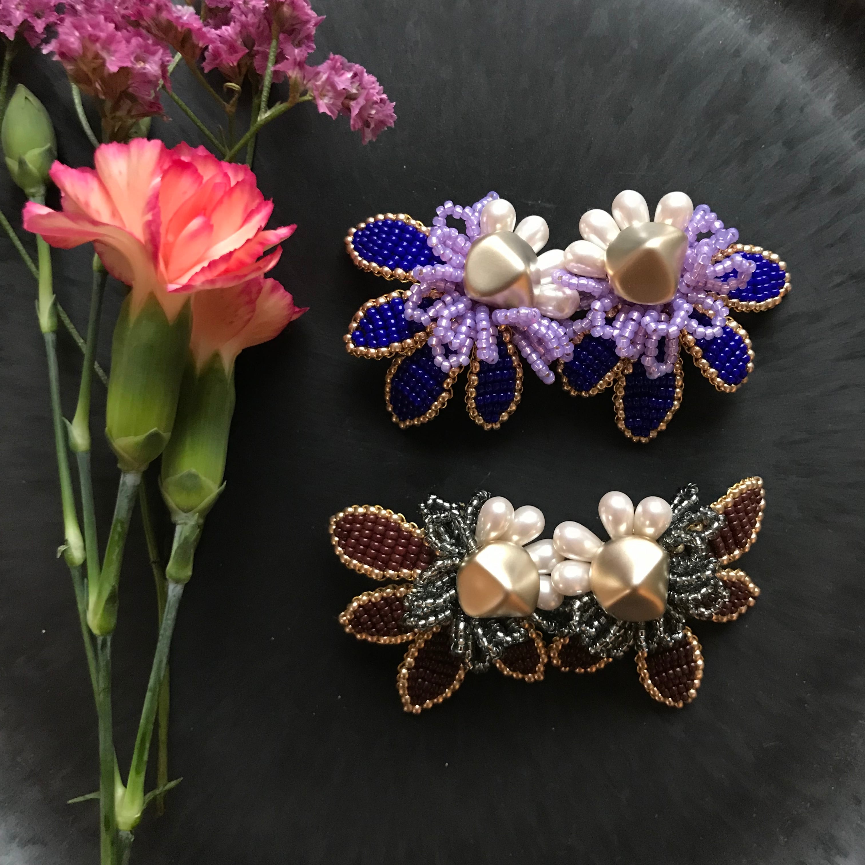 ゴールドのパーツを中心に大きな花びらの様なアクセサリーです。大ぶりではありますが、比較的耳にご負担なくご使用できます。 重さ:約8g/個 ▽アレルギー対応について▽ こちらのピアスはチタンポストとなっております。イヤリングのアレルギー対応は出来かねますのでご了承下さい。 ▽その他▽ アクセサリーは一つひとつ手作業で作成しております。パーツの配置等個々に多少の差が生じます。また製作中にワイヤーなによる微細な傷が付いている場合があります。何卒ご了承下さい。