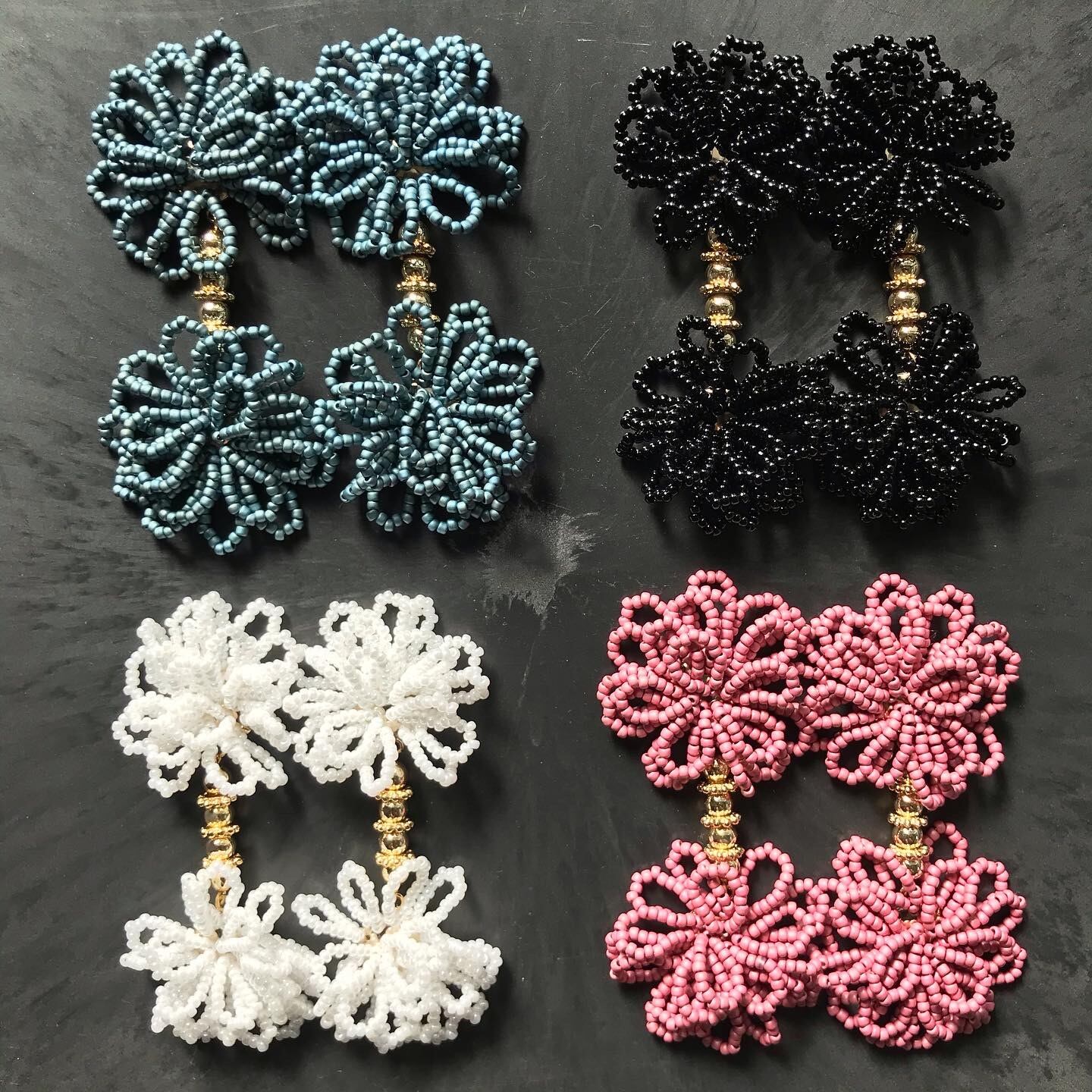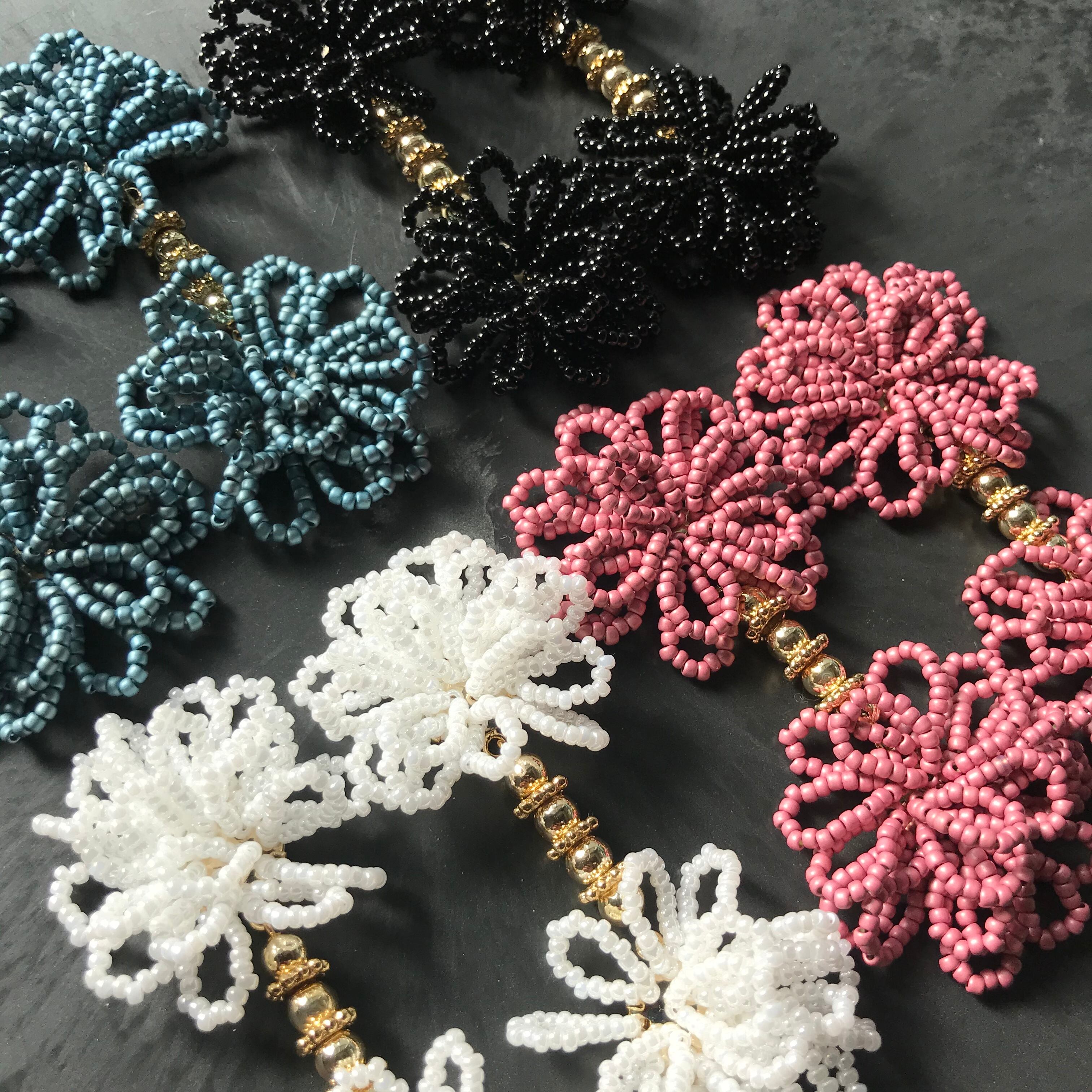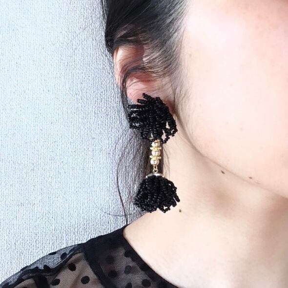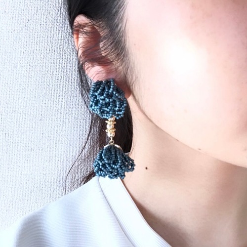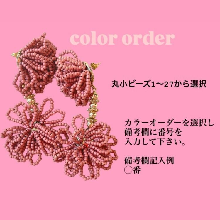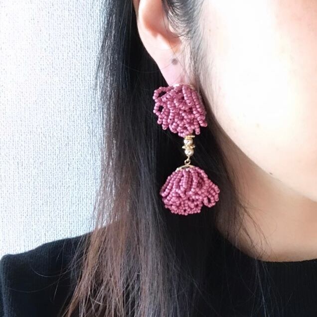 落ち着いたカラーのビーズをたくさん使いゴールド のビーズで繋げました。大ぶりですが重さは気にせずご使用いただけます。 重さ:約12g/個 ▽アレルギー対応について▽ こちらのピアスはチタンポストとなっております。イヤリングのアレルギー対応は出来かねますのでご了承下さい。 ▽その他▽ アクセサリーは一つひとつ手作業で作成しております。パーツの配置等個々に多少の差が生じます。また製作中にワイヤーなによる微細な傷が付いている場合があります。何卒ご了承下さい。